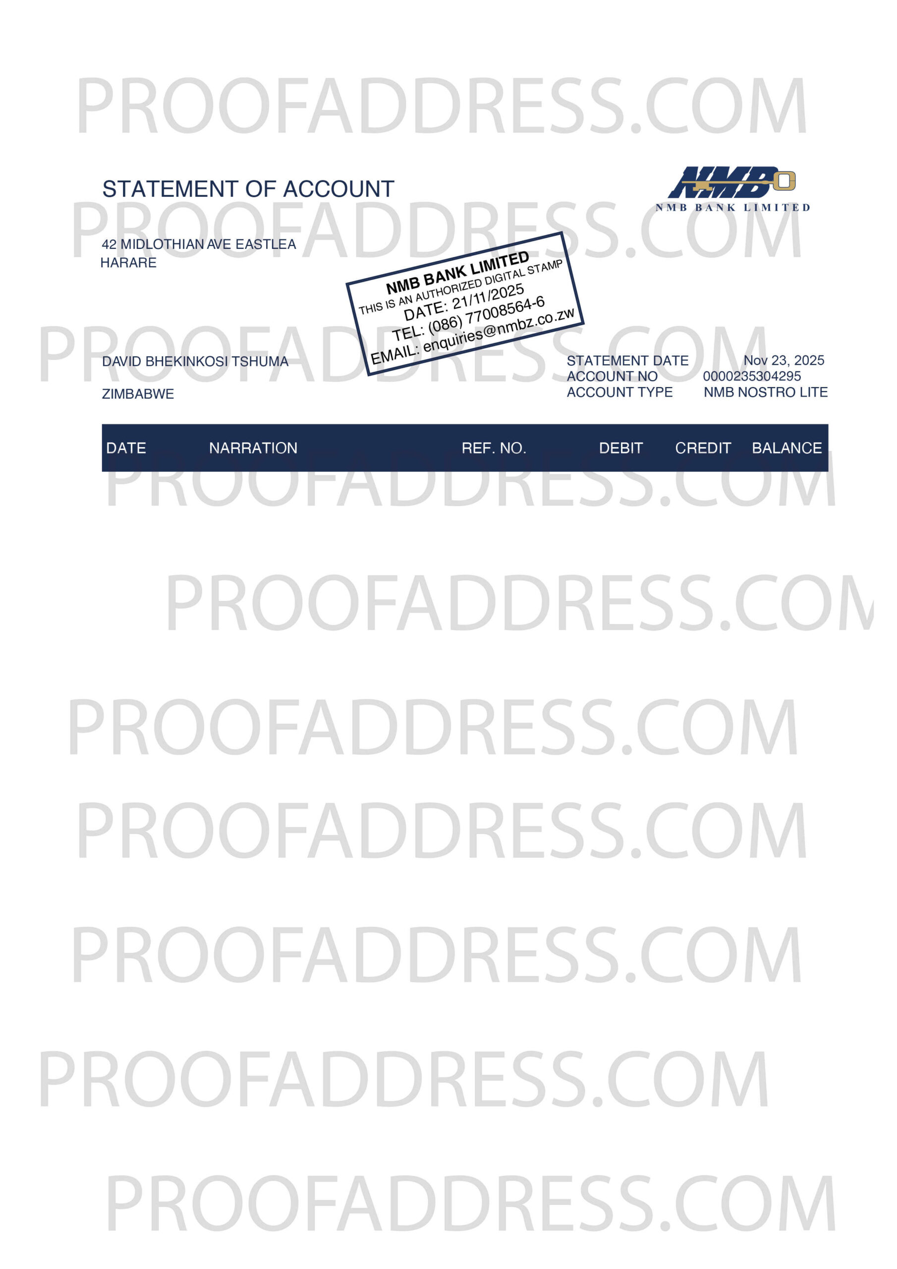 Editing bank statement NMB Bank