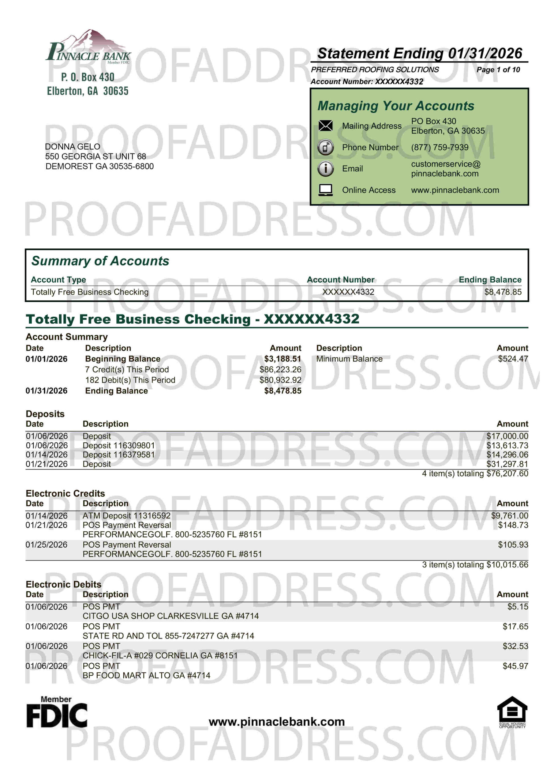 Editing bank statement Pinnacle Bank