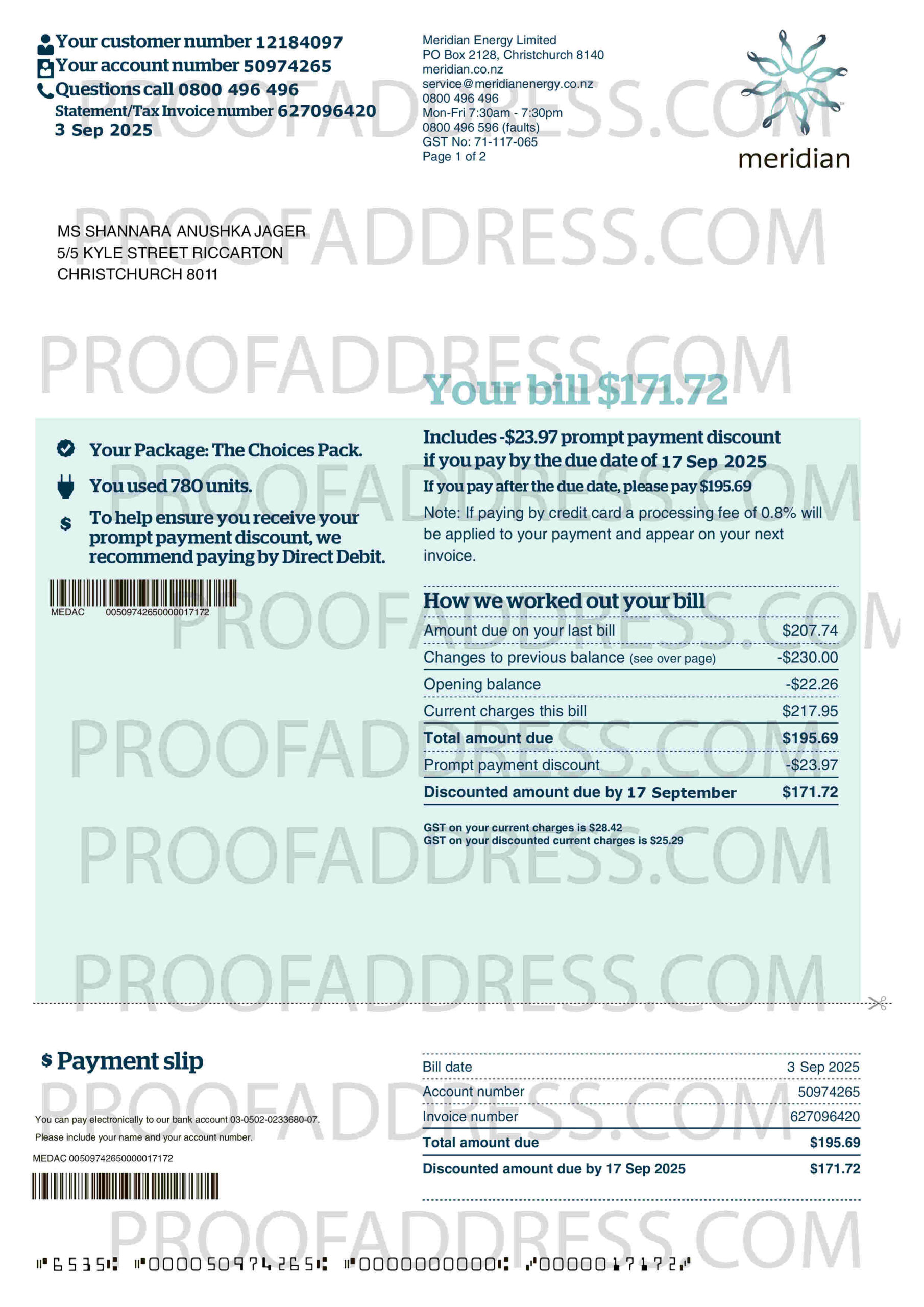 Editing utility bill Meridian Energy