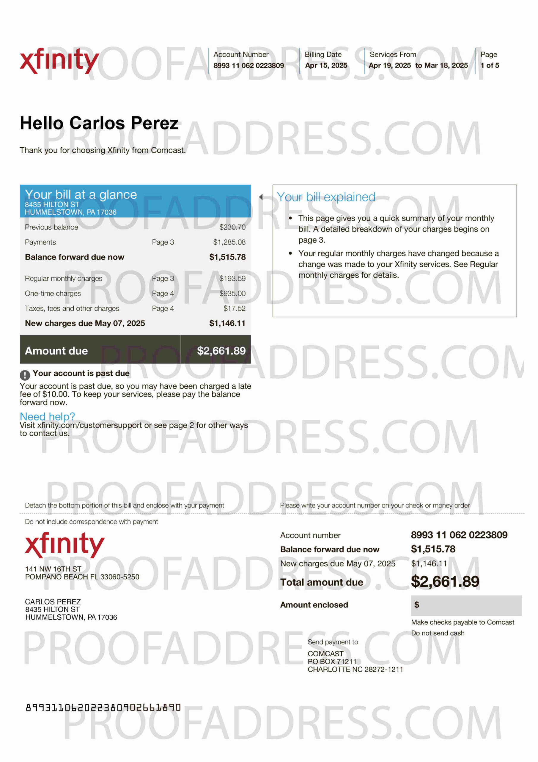 Editing utility bill Xfinity version 2.2